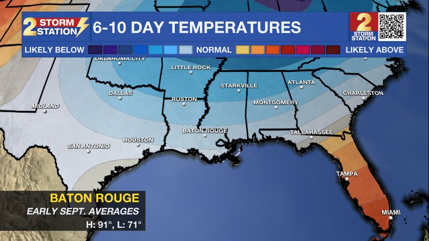 Up Next: A series of fronts will affect the region. Early in the week, the first front will bring dry air, while temperatures will remain near normal. As the upper pattern keeps a trough in the east, the door will open for slightly cooler air by the weekend. Even with sunshine, late week temperatures may stay below 90, and nighttime lows will dip into the 60s nearly everywhere. Chances for rain will be slim to none for much of the new work week.The home opener at Tiger Stadium Saturday is looking fantastic!