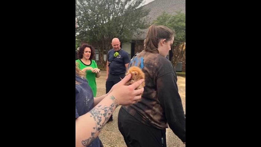 Multiple firefighters from the Baton Rouge Fire Department came to the rescue and removed four little kittens that were trapped.