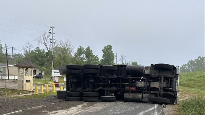 The truck flipped on its side and completely blocked the roadway. The Ascension Parish Sheriff's Office said the crash happened around 8:12 a.m.