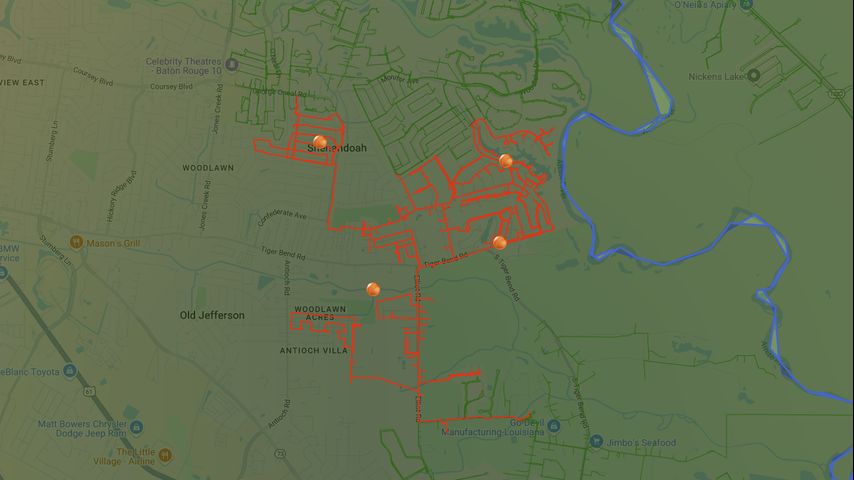 DEMCO reported outages near the Shenandoah area off Tiger Bend Road.