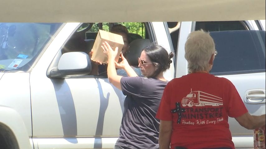 Church organization Transport Ministries handed out hot plates, beverages and cleaning supplies to everyone who showed up to the drive-thru.