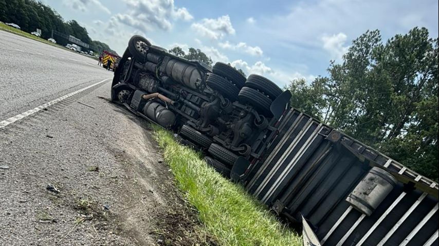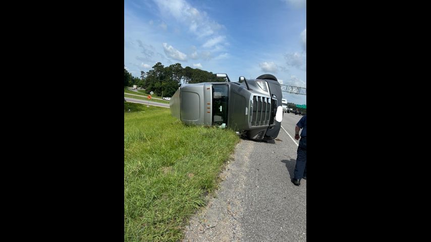 TEAM 2 TRAFFIC: Eastbound traffic still backed up several hours after semi overturns on I-12 in Hammond
