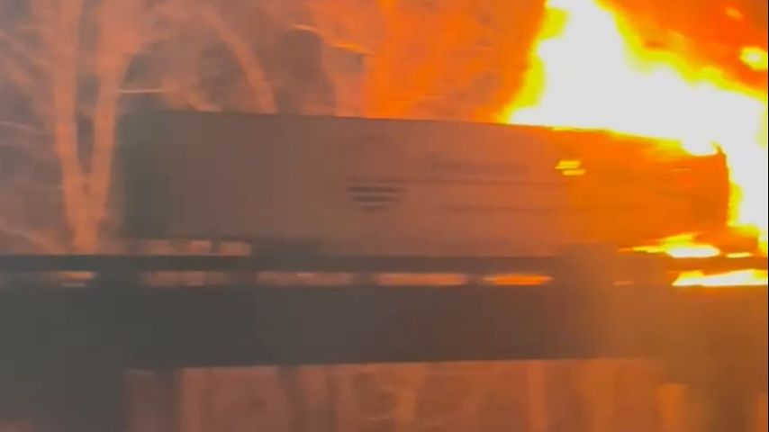 Video showed an 18-wheeler engulfed in flames. Motorists are advised to use an alternate route.