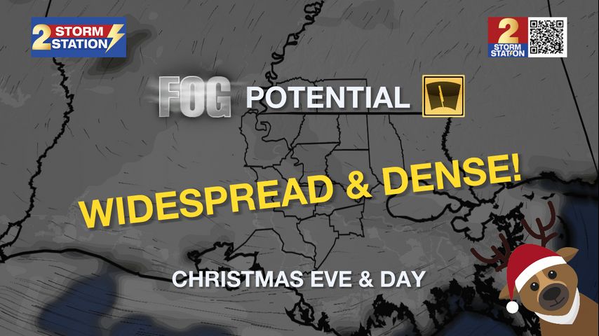 Today and tonight: Christmas Eve starts with patchy fog in spots, but visibility improves by mid-morning. The rest of the day looks quiet and unseasonably warm, with highs climbing into the mid to upper 70s across Baton Rouge and surrounding areas. Humidity stays elevated, and winds remain light. Tonight, conditions turn problematic again as widespread dense fog redevelops, potentially impacting travel late tonight into early Thursday.